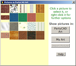 Click My Art to see the textures you have imported into PartyCAD.